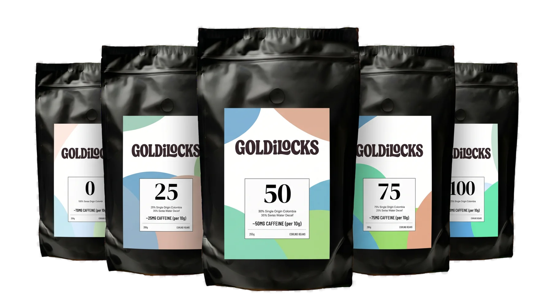 One coffee can't fit every part of your day. With Goldilocks you choose your level: 100, 75, 50, 25, or decaf. Have a strong cup at breakfast, something lighter after lunch, and real coffee in the evening that won't keep you up.